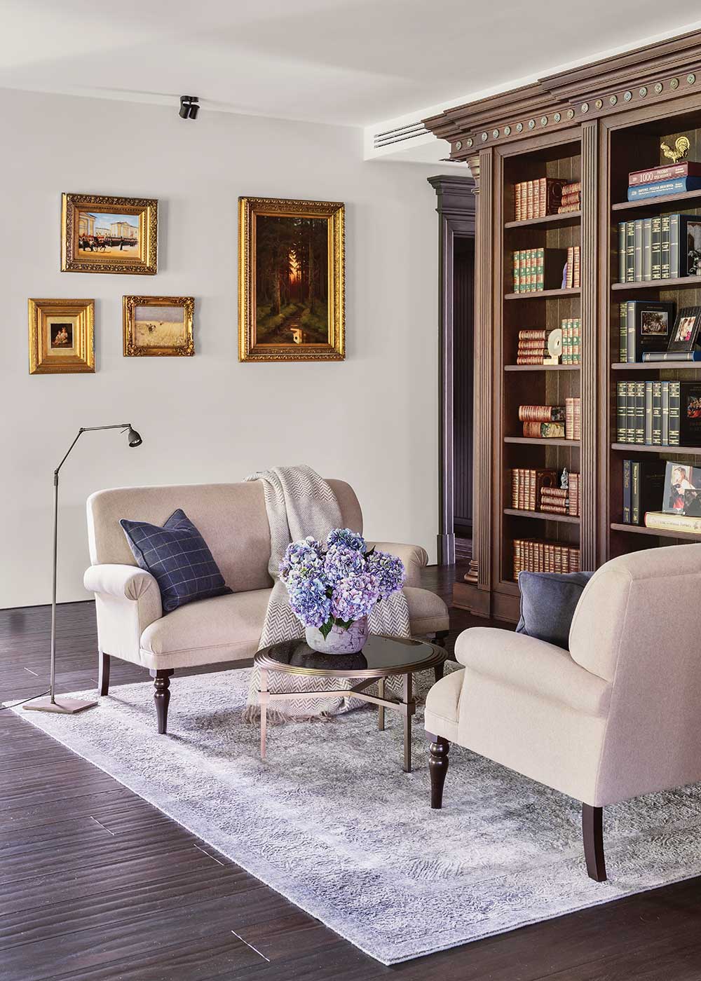 Искусство – то, что придаёт интерьеру завершённость. Это последние штрихи, которые приводят весь заданный пространству сюжет в движение, повествуя историю его обитателей. Эффект преемственности и связи поколений достигается в том числе с помощью живописи, скульптур и других предметов арта.