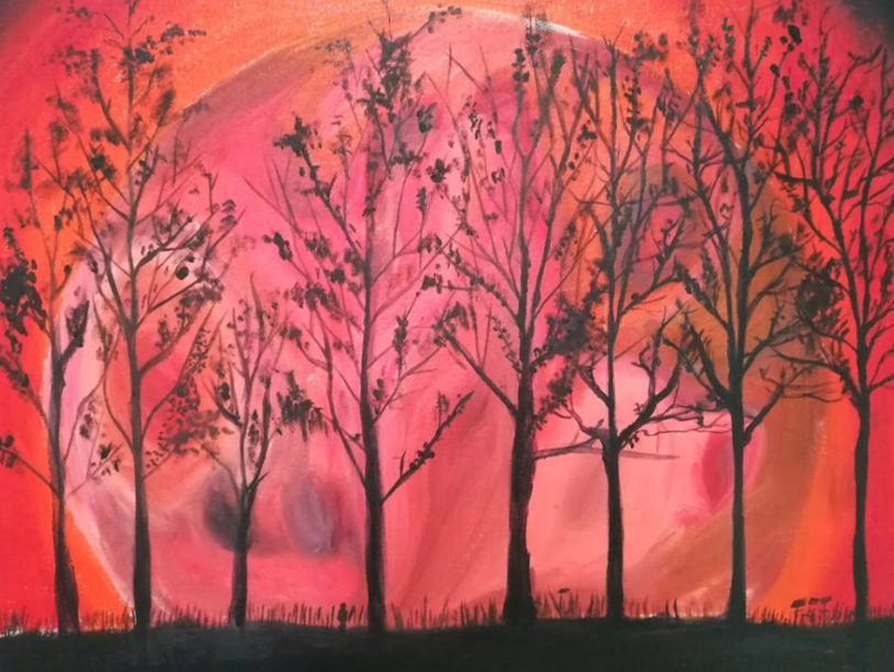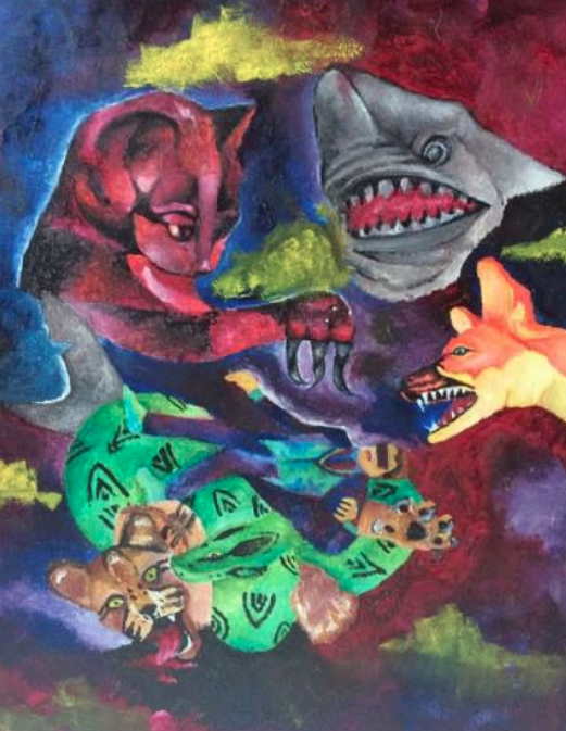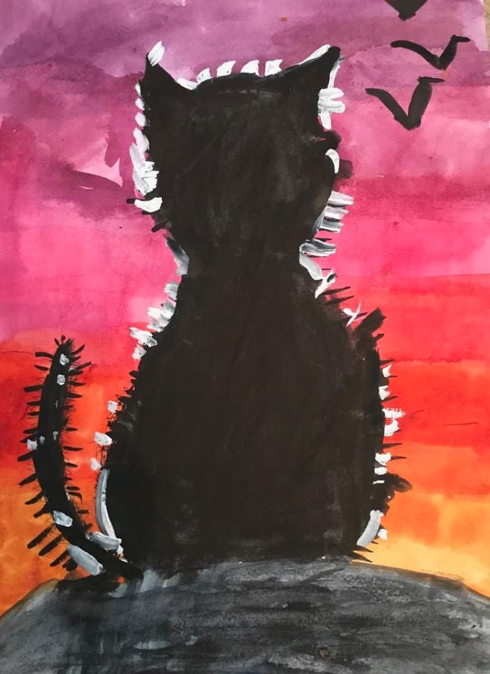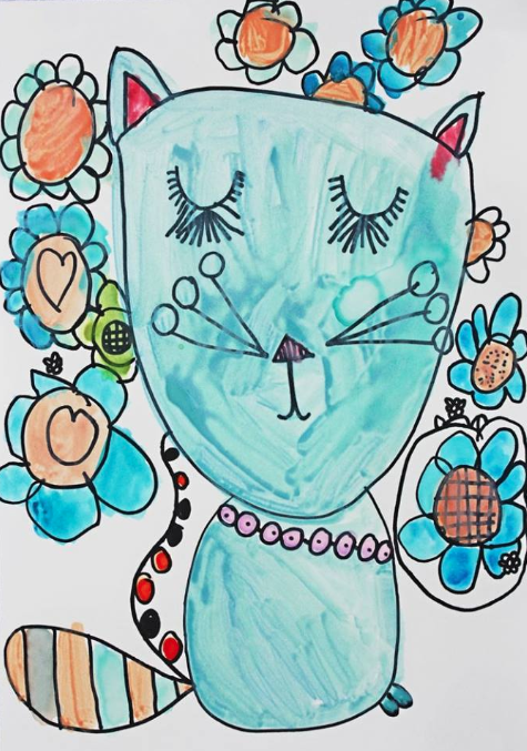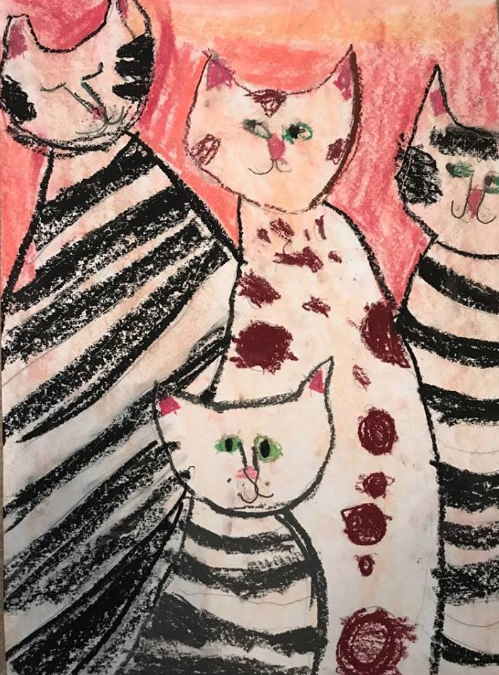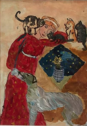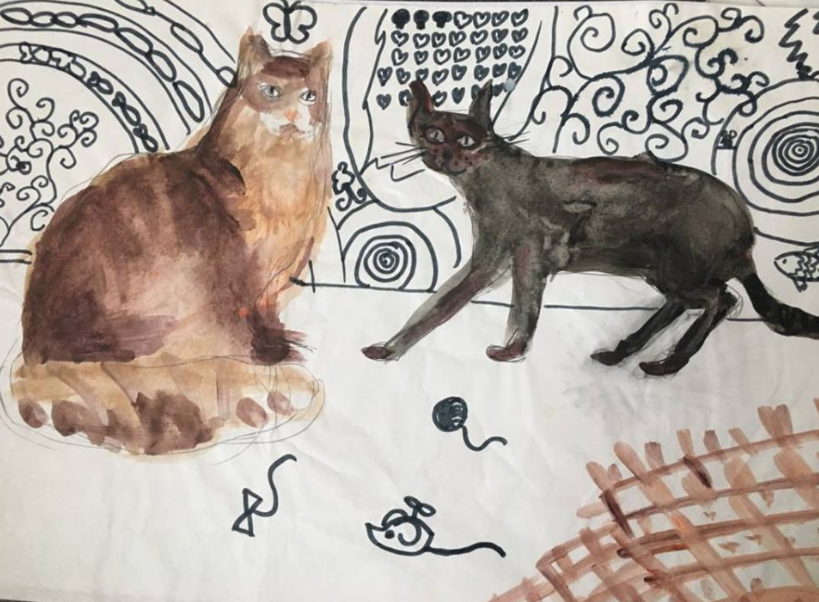 Виктория Узбекова, 7 лет. Кошка в фиолетовом лесу