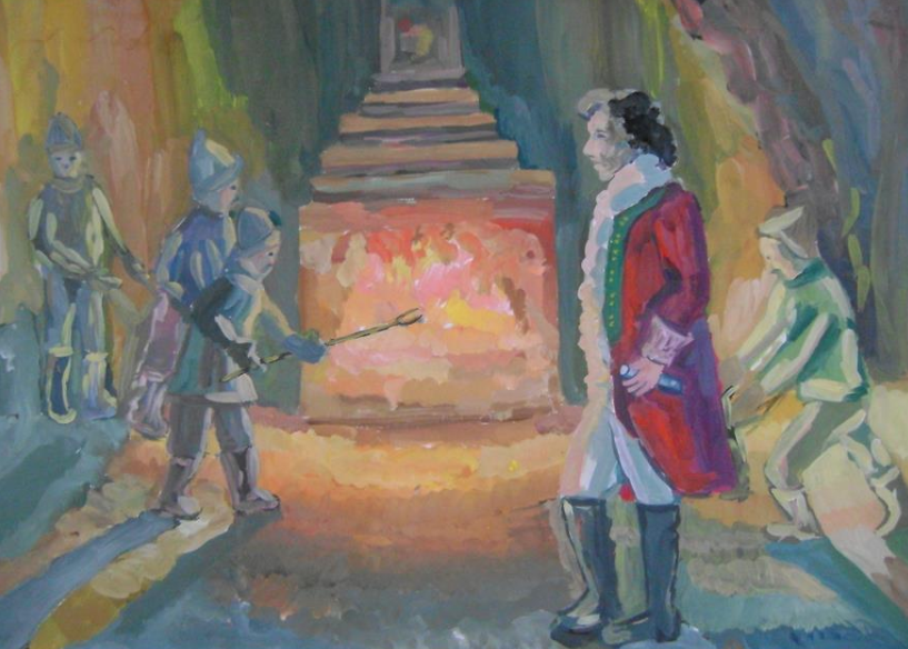 Полина Мартюшева, 14 лет. Иван Ползунов демонстрирует модель огненной машины