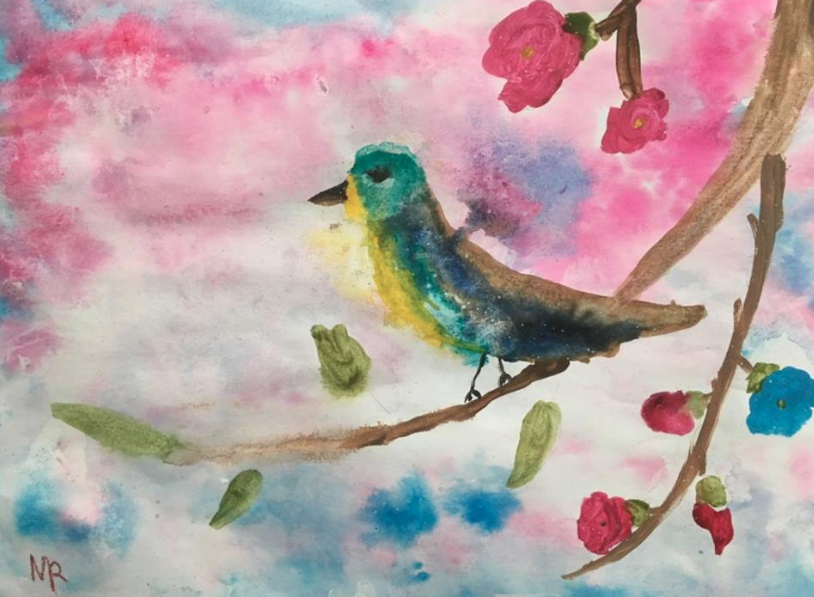 Алина Лакомкина, 4 года. Попугаи и лебедь
