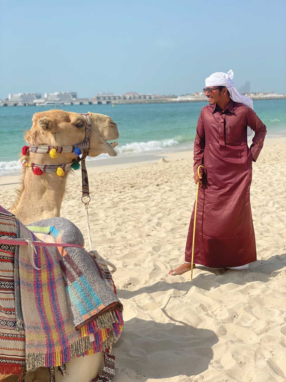 Погода в Дубае неизменно приятная, минимум плюс двадцать пять в любое время года. Море тёплое и солёное. Что ещё нужно для счастья? Разве что прокатиться на верблюде вдоль кромки моря, покачиваясь мерно на горбатой спине и наблюдая с одной стороны бескрайнюю синеву, а с другой – замысловатые здания, устремившиеся высоко в небо, поражающие своей оригинальностью и вычурностью.