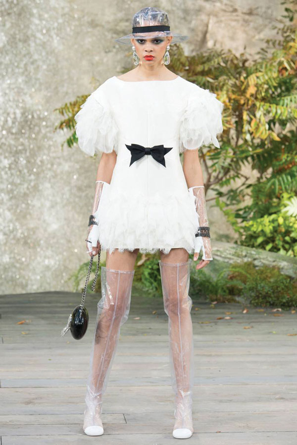 Но на последних неделях моды произошло неслыханное: на подиумы уверенно шагнули модели в откровенных нарядах из белого тончайшего шёлка, белой сетки, укутанные в белые воланы и складки. Даже «маленькое чёрное платье» вдруг стало фактурным белым с перфорацией и узорами.