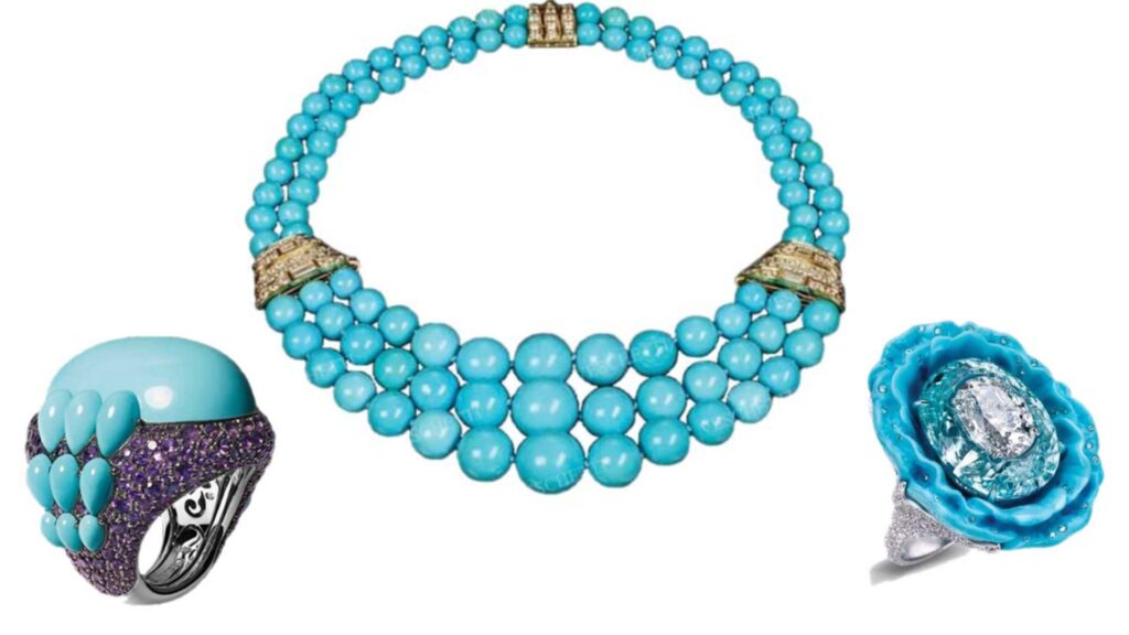 Самое раннее использование бирюзы в ювелирных изделиях относят Древнему Египту, более 6 000 лет до нашей эры. Украшения со вставками из этого камня находят в гробницах фараонов и знати. В Северной Америке обработанную бирюзу нашли при раскопках поселений Каньона Чако, Нью Мексико, датируемых 2 000 лет до нашей эры. Древние умельцы изготавливали бусы, подвески, мозаику и скульптурки из этого минерала.