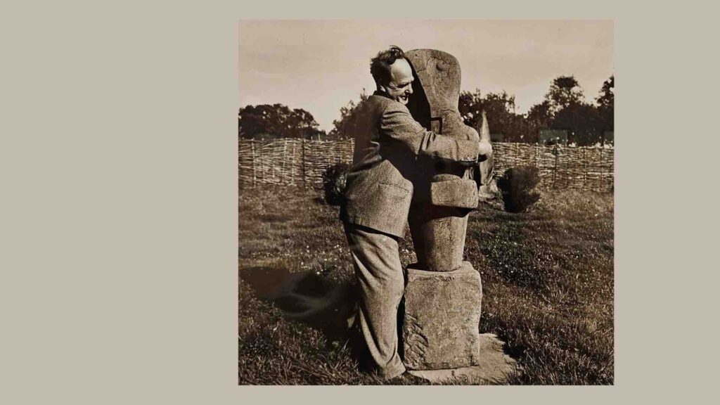 Генри Мур со своей скульптурой «Мать и дитя». Сад Фарлис, Восточный Суссекс, 1953 год. Фото: Ли Миллер © Архив Ли Миллер