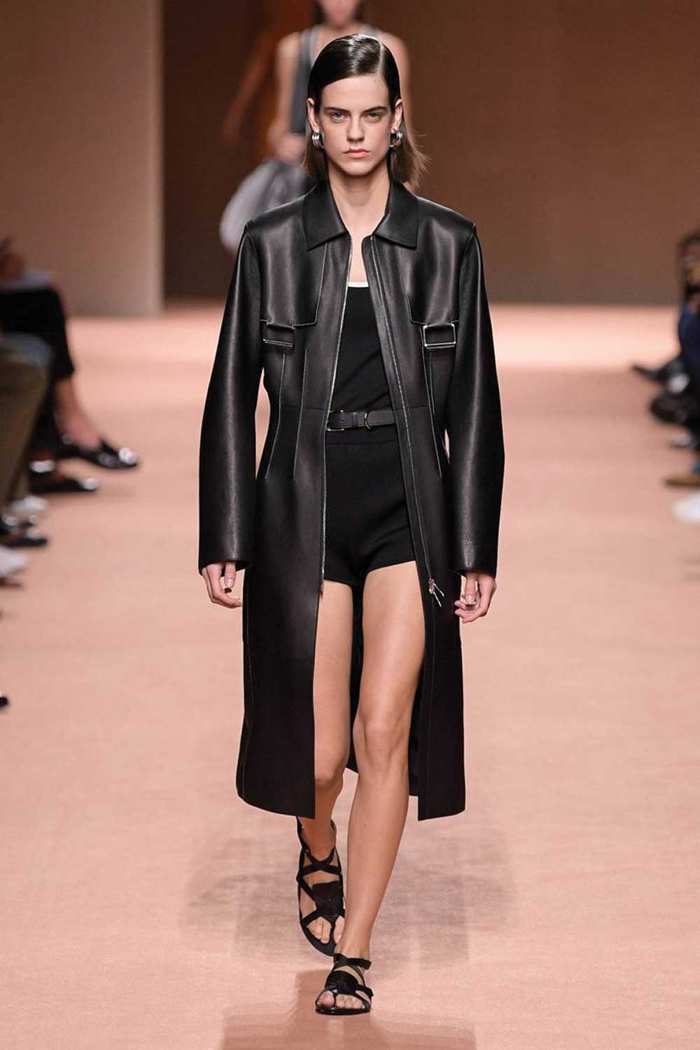 Гиганты модной индустрии – Hermes, Saint Laurent, Versace и Mugler – отдают предпочтение образам в стиле Total Look, сексуальным вибрациям чёрной лайковой кожи и чётко выверенной монохромности элегантных ансамблей.