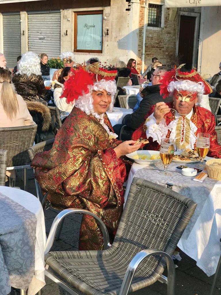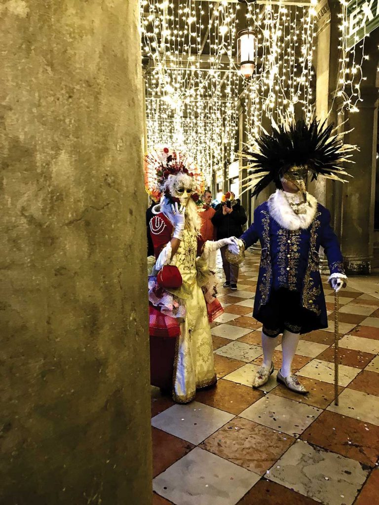 Прогуливаясь по узким венецианским улицам во время карнавала, встречая роскошно одетых дам и кавалеров, лица которых скрыты изысканными масками, вы словно переноситесь на несколько веков назад. Но внезапно, обернувшись, замечаете господина в парике и шёлковых чулках, восседающего на пластиковом стуле уличного кафе и потягивающего из высокого стакана Birra Moretti, а за соседним столиком – синьора в парчовом платье с кринолином и в невероятных размеров шляпе, торопливо и жадно поглощающая спагетти в томатном соусе, успевая в это же время выкладывать фотографии в Инстаграм.