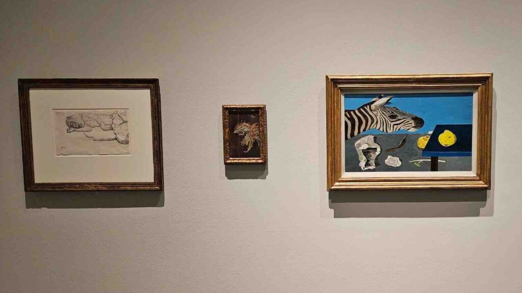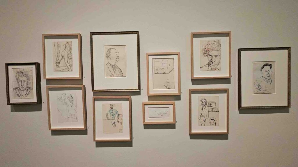 Кураторы явно хотели показать, что рисунок у него не вторичен. Это не черновик, не технический этап, который нужно скрыть. Это самостоятельная форма мышления. В некоторых случаях рисунки выглядят даже более интимно, чем картины. Они ближе. Они не защищены толщиной краски. Бумага хранит колебание руки, паузу, сомнение.
